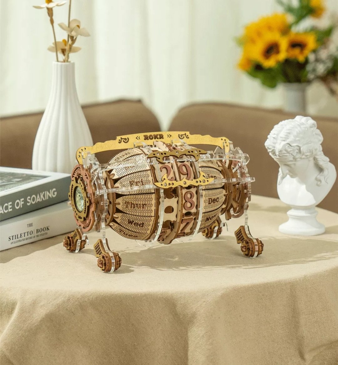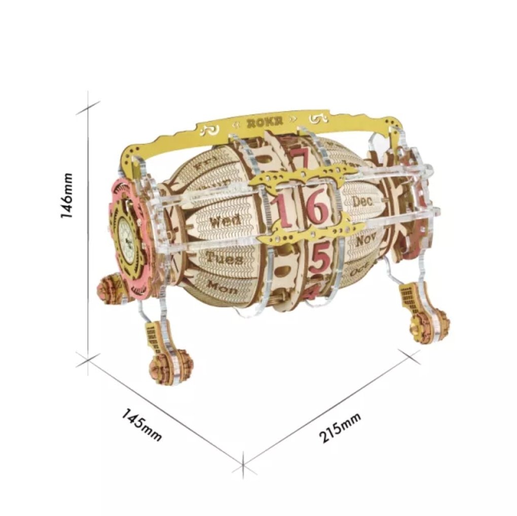 Timeless engine je jedinečný 3D model kalendára a hodín. Tento puzzle projekt po dokončení vytvorí nadčasový vintage bytový doplnok.