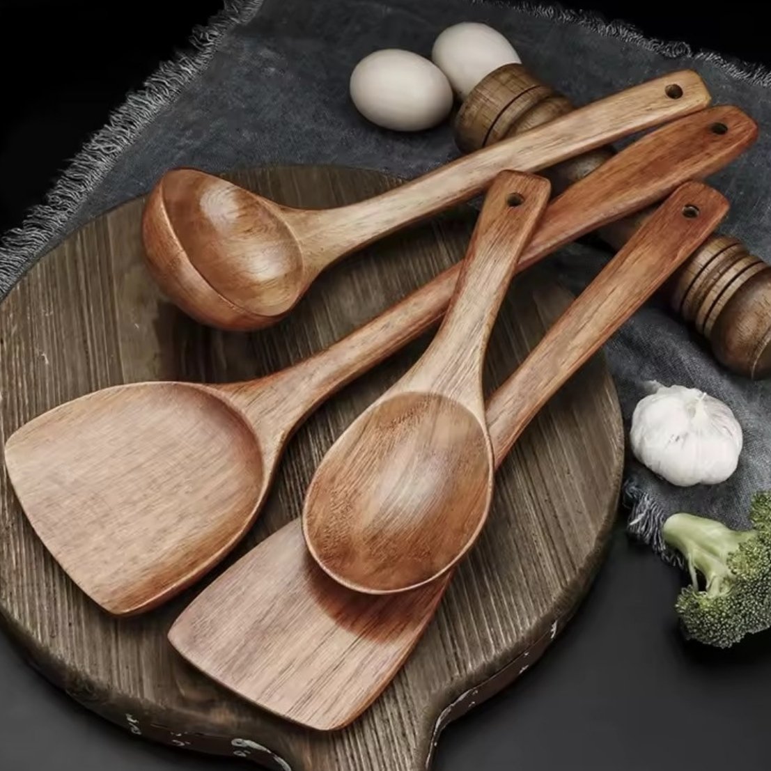 Premeňte prípravu jedla na príjemný zážitok. Táto sada kuchynského náčinia nie je len o miešaní polievky; je o pocite z varenia. Drevo je materiál, ktorý do kuchyne patrí odjakživa – je prirodzené, netoxické a časom získava krásnu patinu.